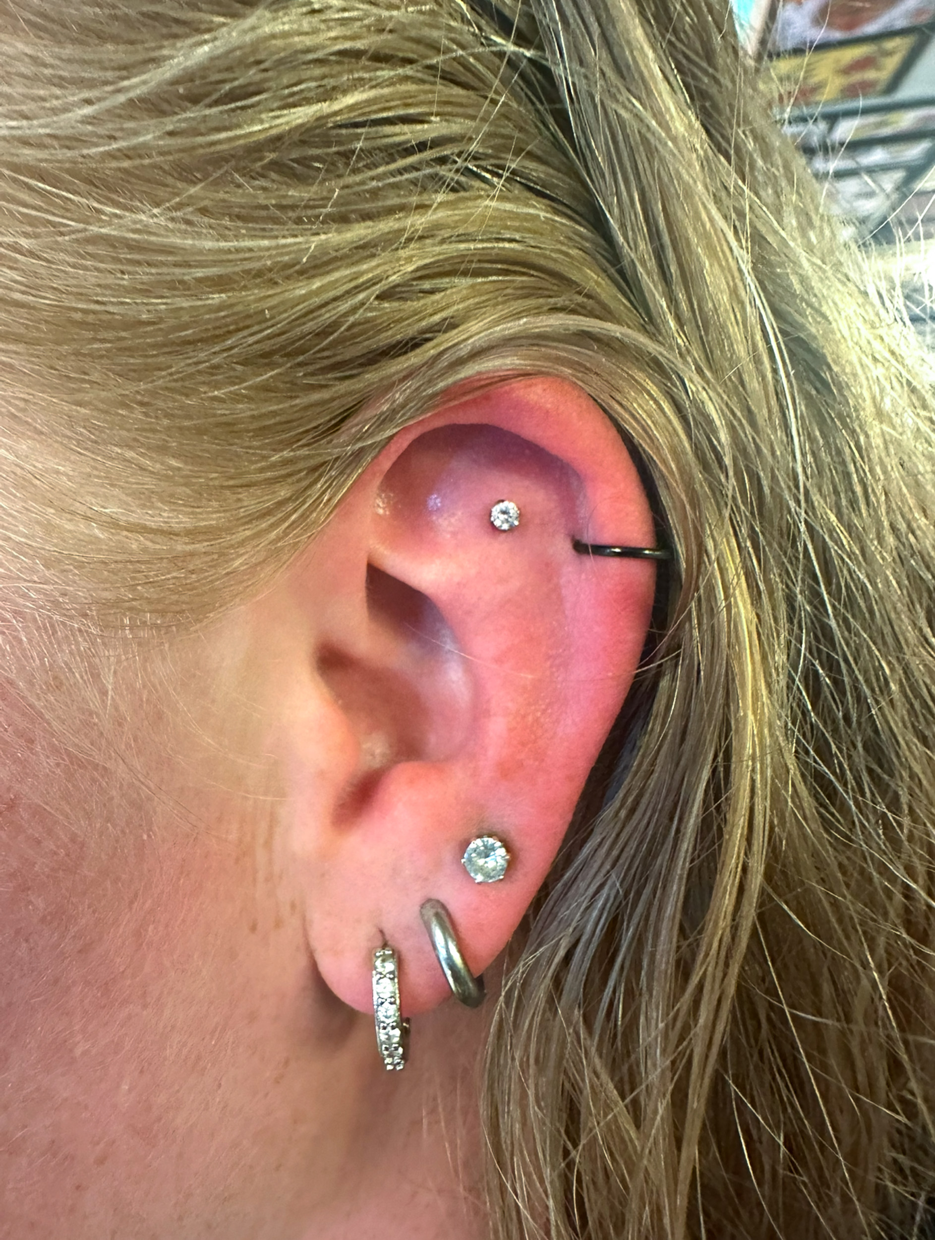 - 6 years old for ear lobes (Please contact us by phone or email to discuss children’s piercings before booking).